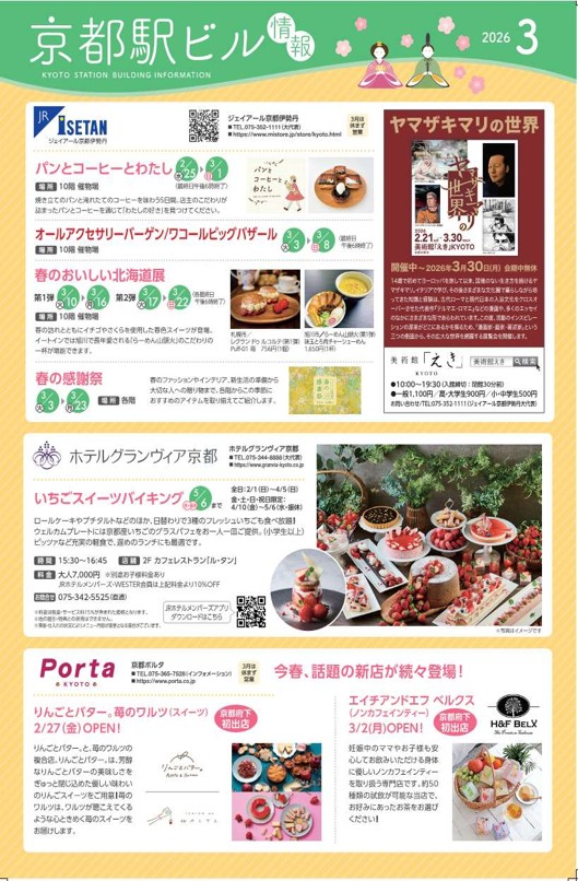京都駅ビルがお届けする「ジェイアール京都伊勢丹」「ホテルグランヴィア京都」「京都ポルタ」の旬な情報やおトクな情報、京都駅ビルで毎月開催される楽しいイベント情報など盛り沢山!