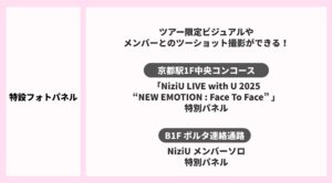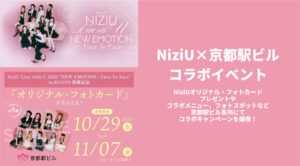 京都駅ビルグループ(株式会社ジェイアール西日本伊勢丹、株式会社ジェイアール西日本ホテル開発、JR西日本京都SC開発株式会社、京都駅ビル開発株式会社)は、『NiziU Live with U 2025 “NEW EMOTION : Face To Face”in KYOTO』開催を記念し、コラボキャンペーンを実施いたします。